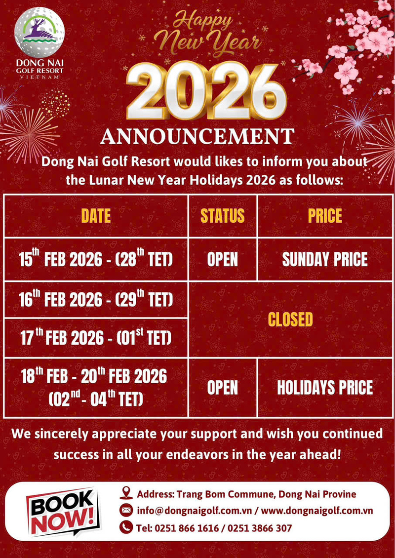 Trân trọng thông báo đến Quý Khách lịch hoạt động dịp Tết Nguyên Đán 2026